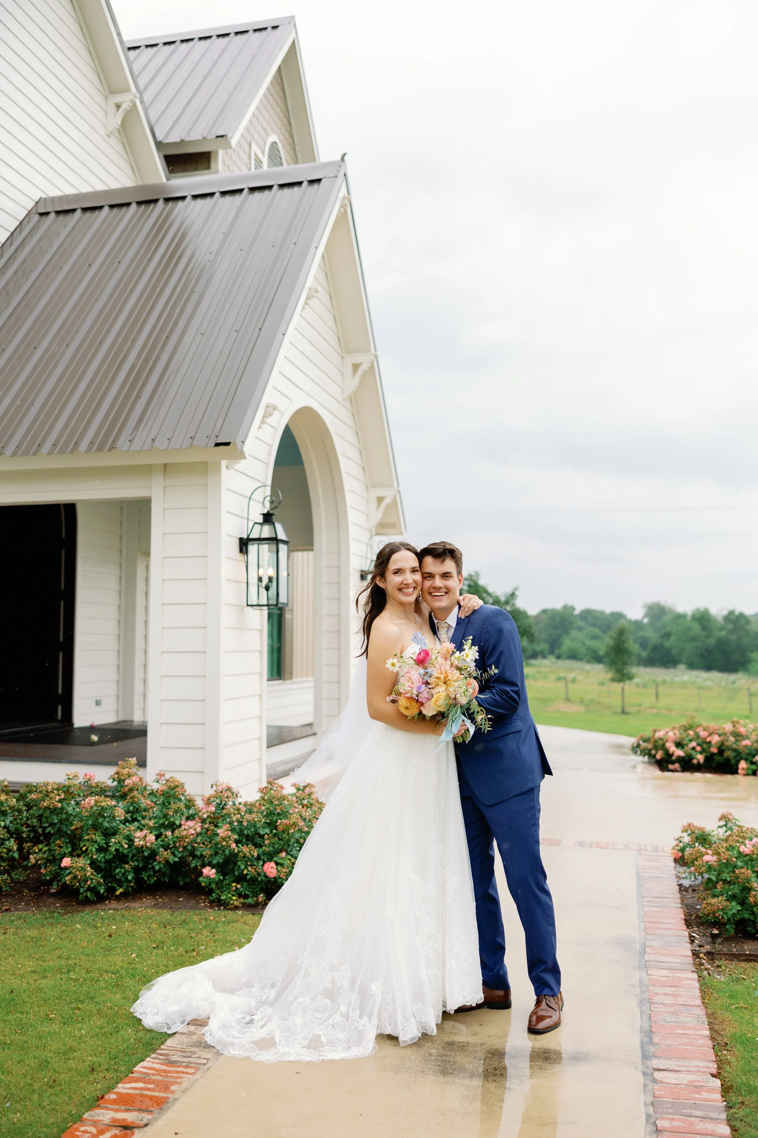 Despite the rain on their wedding day, held at the stunning Deep in the Heart Farms in Brenham, Texas, Kayla and Connor embraced the weather, making the most of the moment. We even ventured out to capture some breathtaking rainy wedding photos — the results were absolutely magical, and the overcast skies only added to the intimate, romantic feel of their day.